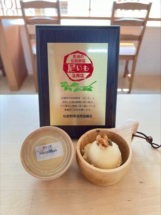 【ロースイーツ】として、尼いものローアイスや尼いものビスコッティを販売。