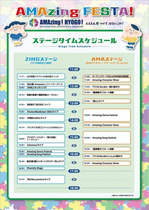 ③あまがさきキューズモール2F Q’sパークステージ・・・子供たちや親子で楽しむことができる歌、ダンス、お笑い、キャラクターショーなど多様なステージを開催。