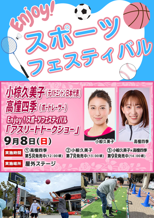 元バトミントン日本代表の小椋久美子やボートレーサーの高憧四季によるトークショーを実施。