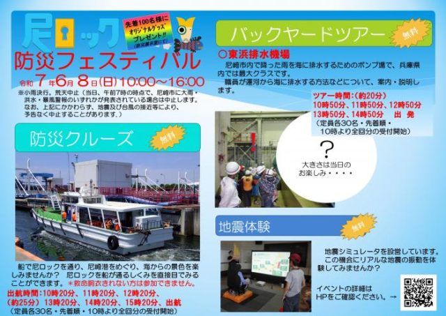 尼ロック防災フェスティバルでは、実際に船に乗って尼ロックを通航し尼崎港周辺を周遊、