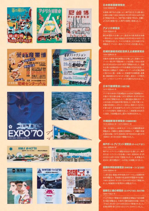 昭和25年(1950)開催の日本貿易産業博覧会から平成2年(1990)開催の国際花と緑の博覧会までの