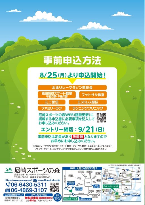 申込方法など詳細は、尼崎スポーツの森ウェブサイトをご覧ください。
