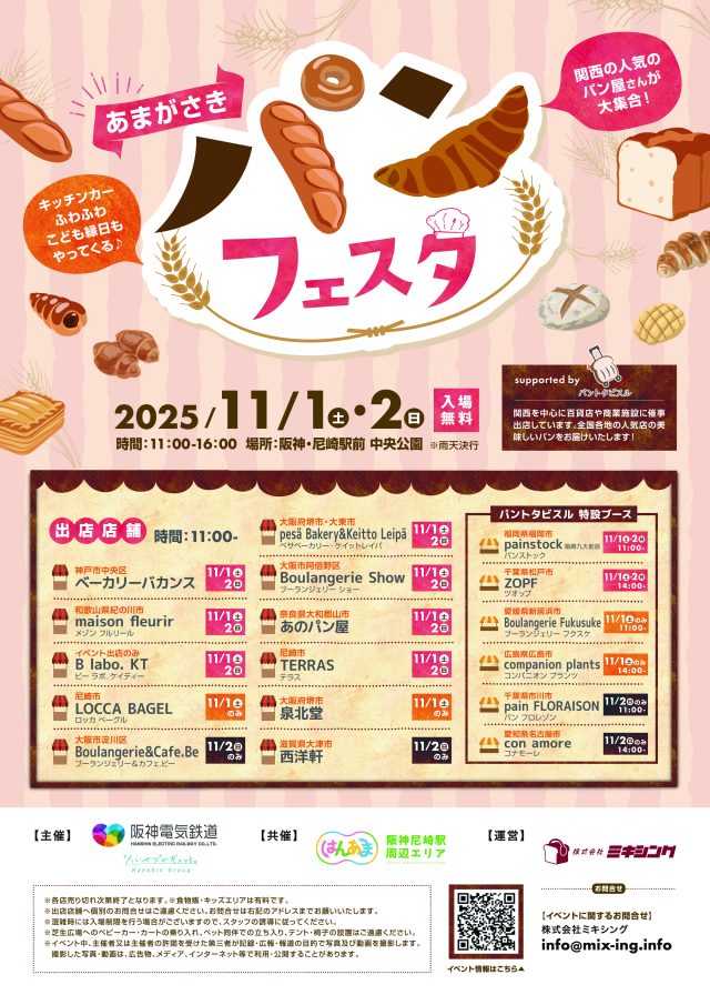 関西を中心に、全国各地の人気のパン屋さんが2日間で17店舗出店します。