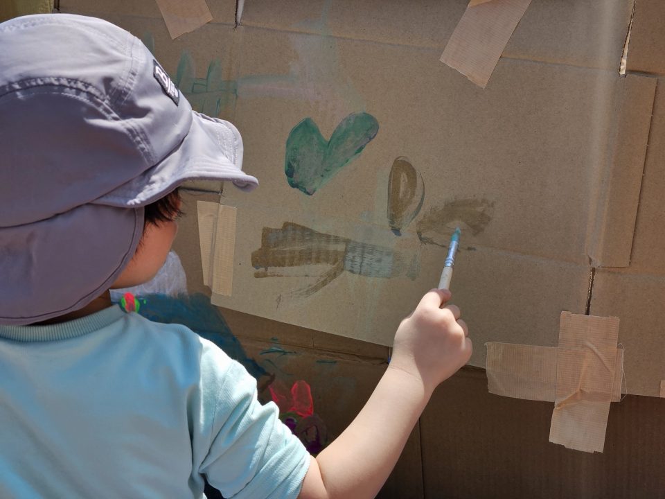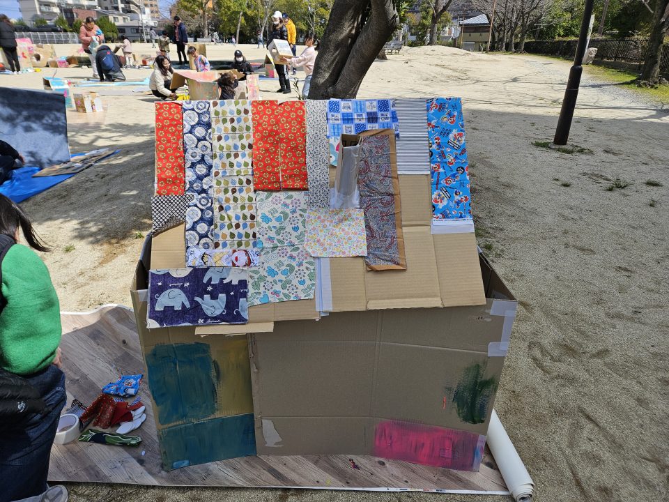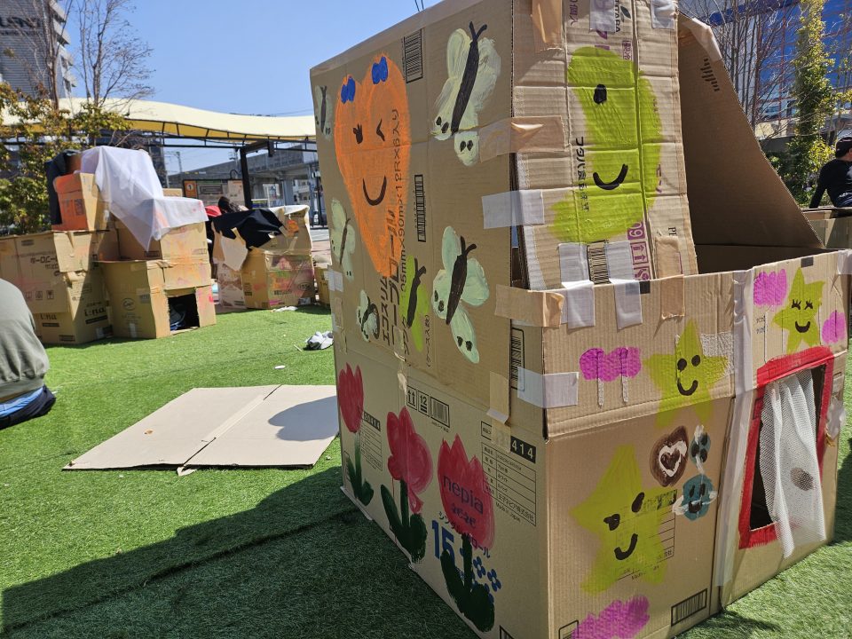 段ボールなどの廃材や絵の具などを好きなだけ使って大きなお家を作る参加無料の工作イベントです。
