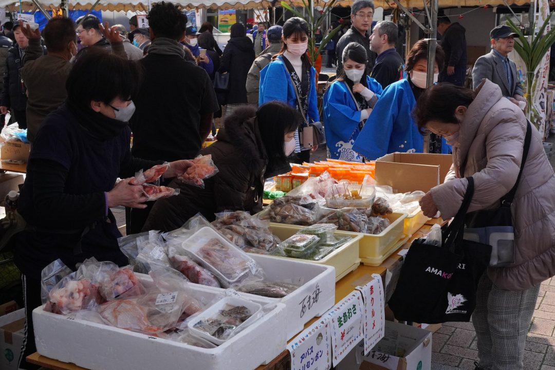 タンカンをはじめ、黒糖製品、きび酢、紬製品、よもぎ餅、海産物など瀬戸内町の特産品販売のほか、