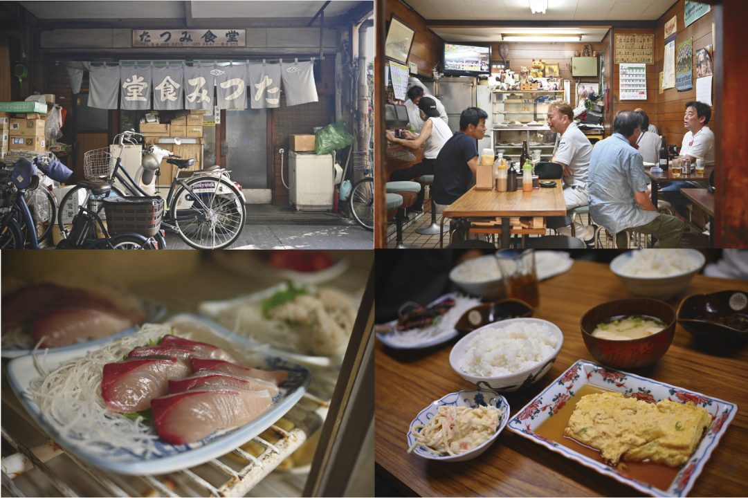 この日は「たつみ食堂」さんにお邪魔し、今回はだし巻き定食とお刺身をいただきました。
