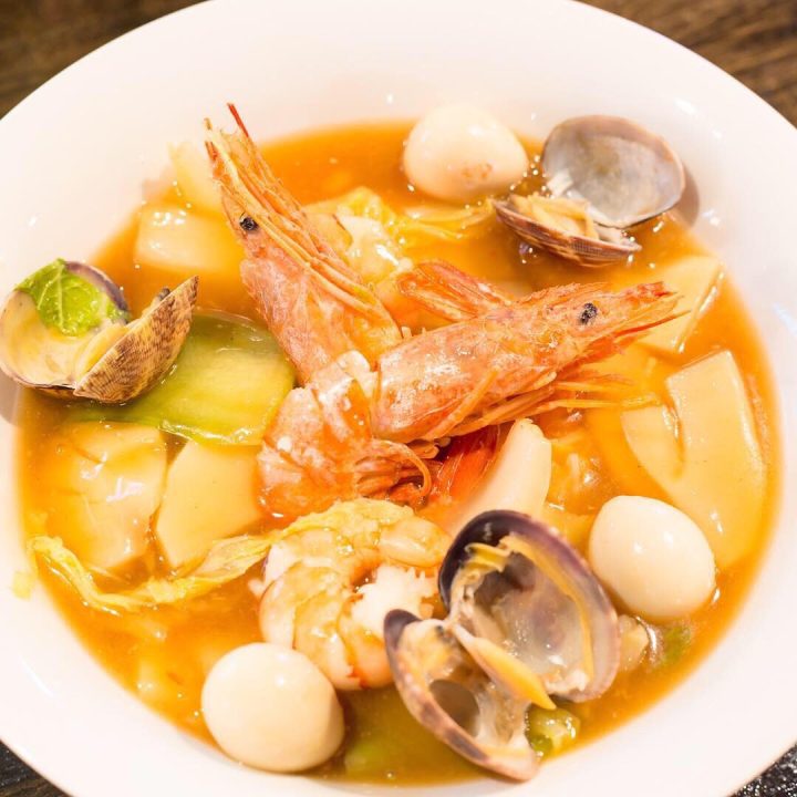 大きなエビが目を引き、海鮮の出汁がしっかり効いた、ボリューム満点の一杯です。