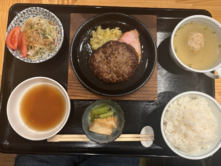 熊本から直送される「“あか牛”を使ったハンバーグ定食」です。