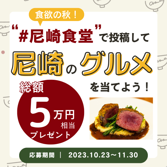 (2)尼崎市内で飲食した際の写真に「#尼崎食堂」とハッシュタグを付け、キャンペーン期間中にご自身のInstagramアカウントに投稿(人物の映り込みの有無は問いません)。